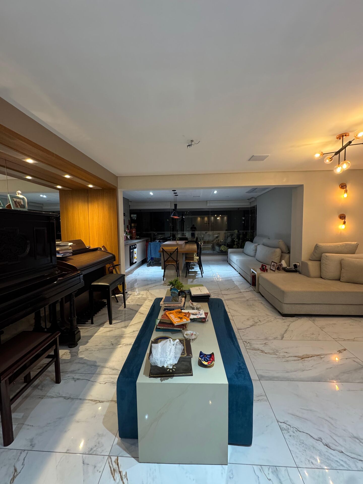 - Living amplo com integração total entre sala de estar, jantar e varanda
